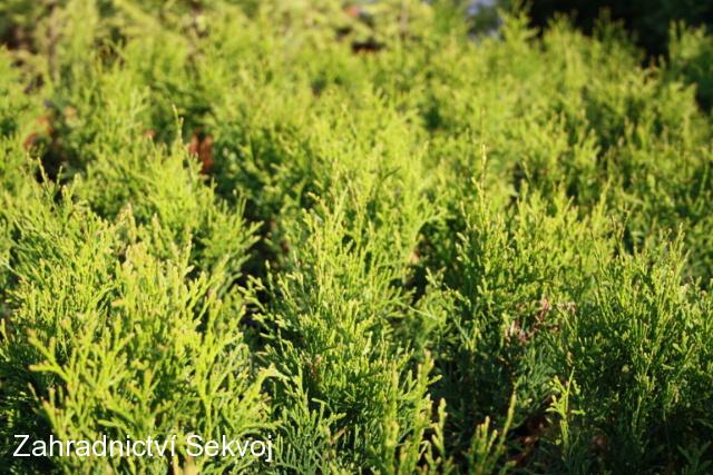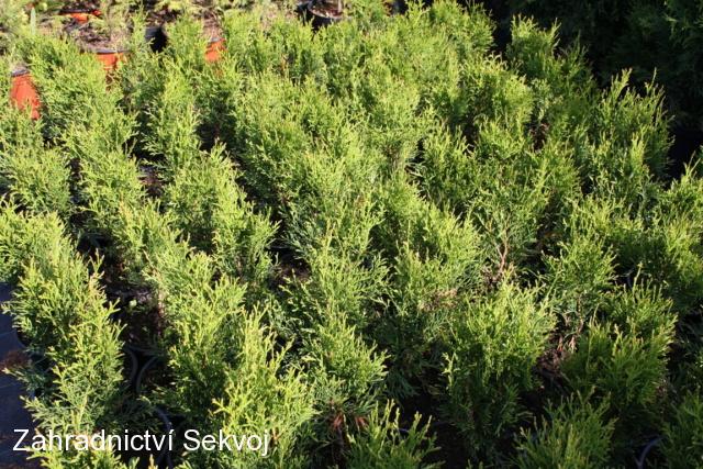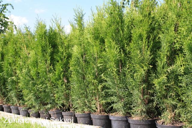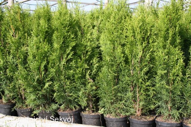 Jedna z nejoblíbenějších thůjí. používaná jako solitera nebo na živé ploty. Má jasně zelenou barvu kterou příliš nezmění ani po příchodu mrazů. Můžete je vysazovat ihned na trvalé stanoviště. Thuje rostou sloupově, ve velikosti 2 m jsou asi 50 cm široké, proto je doporučujeme vysazovat na živý plot 40 - 50 cm od sebe. Čím jsou thuje vyšší, tím mají větší přírustky. Stářím thuje zároveň rostou i do šířky. Poprvé je zastříhávejte až po dosažení požadované výšky, chcete-li například 2 m vysoký plot, nechte thuje vyrůst přes 2 m a pak zastřihněte vrcholy. Po zastřižení se další rok thuje rozšíří i ve špici a plot bude neprůhledný. Stříhejte nejlépe na jaře nebo na podzim. Požadovanou výšku plotu musíte udržovat každoročním zastřižením nových přírustků. V zimě nehnědnou, jen mírně změní odstín. Thuje jsou mrazuodolné, od začátku množení je pěstujeme na otevřeném poli. Můžete je vysazovat i ve vyšších nadmořských výškách.